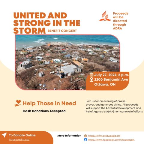 Thank you to all who participated or attended the benefit concert “United and Strong In the Storm” on July 27. Collectively we raised over $1,700. Donations are still being collected until August 17 via ADRA (mark hurricane) as well as through the church’s Adventist Giving (please specify hurricane relief).