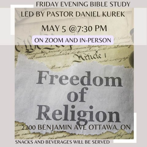 Join us this evening Friday, May 5 at 7:30PM at 2200 Benjamin Avenue in the lower hall. This will be a riveting Bible study where we will discuss freedom of conscience also known as religious freedom. Start the Sabbath with us in the word!