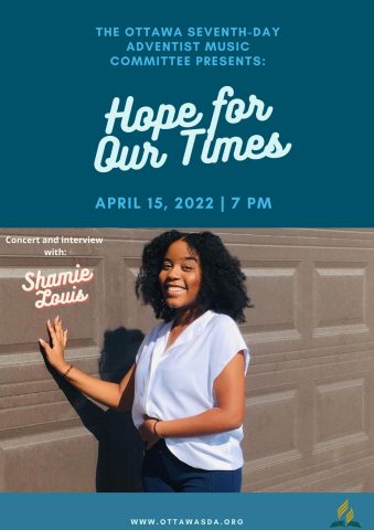 The Ottawa Seventh-day Adventist Church’s Music Committee invites you to its virtual Easter/Good Friday program: “Hope for Our Times,” a concert and interview with Shamie Louis.