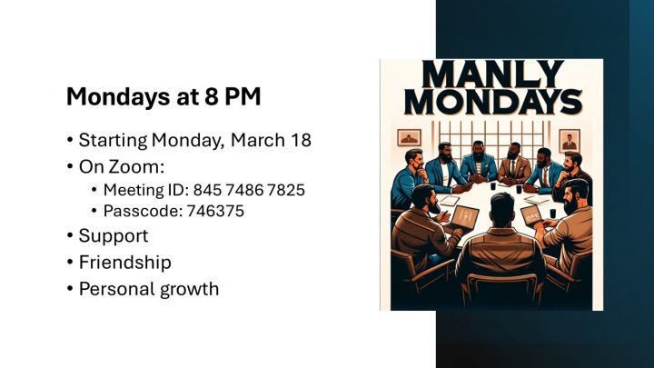 Brothers, Men’s Ministries invites you to get together for “Manly Mondays” every Monday at 8:00 p.m. on Zoom (Meeting ID: 845 7486 7825; Passcode: 746375) until June 17! It is a great opportunity to connect with like-minded men, grow in faith, build friendships, and support each other.