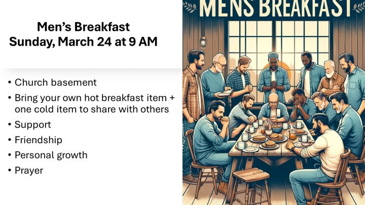 Men’s Breakfast in the church basement at 9:00 a.m. Please contact Wanito Bernadin to join the men’s group chat and learn more about this and other upcoming activities.