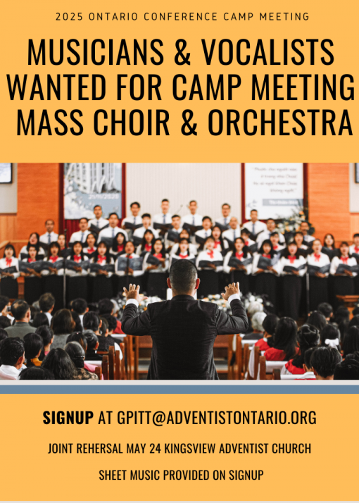 The Ontario Conference Camp Meeting is scheduled for May 30-31, and is always a memorable moment for each of us! As with last year, there will be an Ontario Conference Mass Choir to sing during the divine service. We want to increase the representation from Ottawa. If you would like to be part of this Mass Choir, contact the Music Director, Brother Osvaldo Paiva.