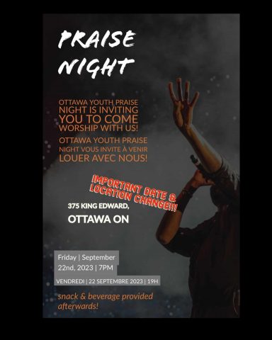 Start the new season in praise at the Ottawa Youth Praise Night this Friday, September 22, at 7:00 p.m.