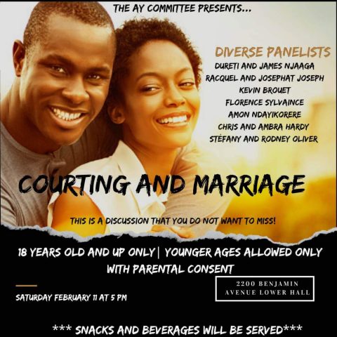 This Saturday, February 11, at 5:00 p.m. the Adventist Youth Committee presents a panel discussion on "Courting and Marriage.”