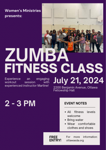 Women’s Ministries presents “Zumba with Martine” at 2191 Benjamin Avenue (gymnasium), from 2:00 p.m. to 3:00 p.m. Join us for a fun opportunity for physical activity and relationship building. All levels welcomed. Remember: