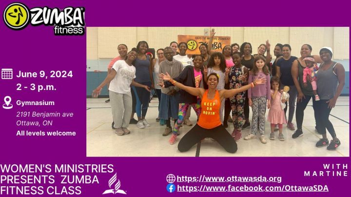 Women’s Ministries presents “Zumba with Martine” at 2191 Benjamin Avenue (gymnasium), from 2:00 p.m. to 3:00 p.m. Join us for a fun opportunity for physical activity and relationship building. All levels welcomed. Remember: